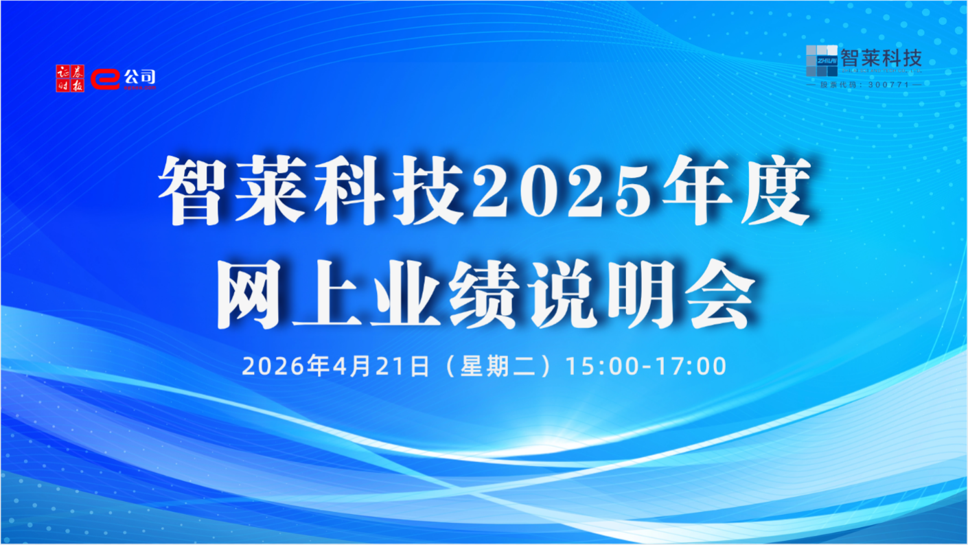 智萊科技2025年度網(wǎng)上業(yè)績說明會將于2026年4月21日(星期二)15:00-17:00舉行,證券時報e公司全程文字直播,敬請關(guān)注。